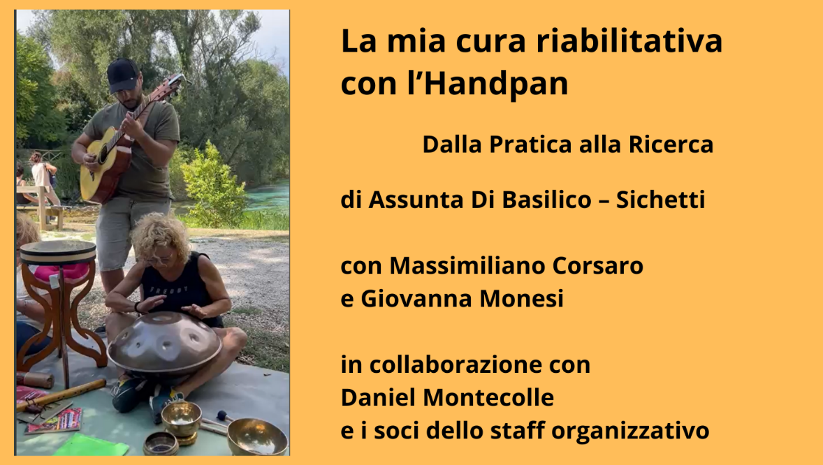 La mia cura riabilitativa con l’Handpan Dalla Pratica alla Ricerca di Assunta Di Basilico – Sichetti con Massimiliano Corsaro e Giovanna Monesi in collaborazione con Daniel Montecolle e i soci dello staff organizzativ