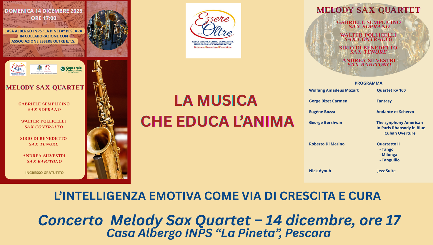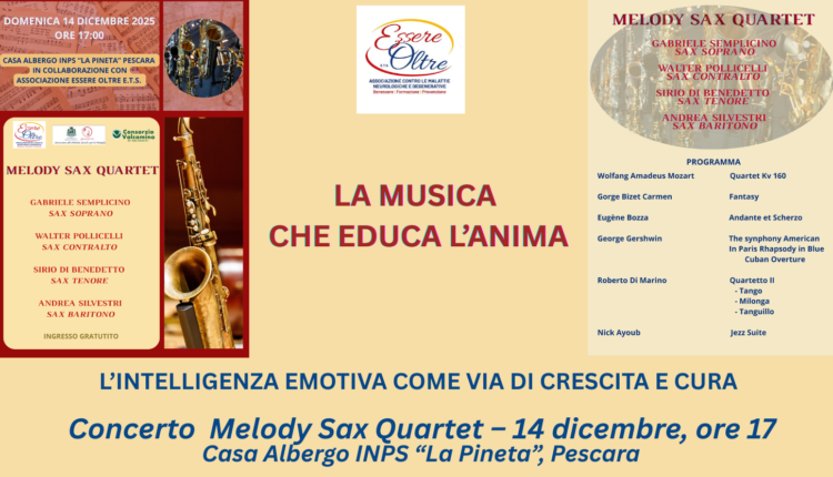 L’INTELLIGENZA EMOTIVA COME VIA DI CRESCITA E CURA Concerto Melody Sax Quartet – 14 dicembre, ore 17 Casa Albergo INPS “La Pineta”, Pescara ________________________________________