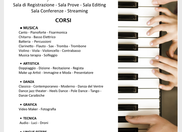Cosa ci dis1ngue dalle altre? Fondata e costituita da professionisti del mondo dello spettacolo che lavorano giornalmente per Reti Televisive Nazionali nell’ambito musicale, mentre nell’ambito tecnico(service – Audio – Luci) con compagnie teatrali internazionali, dove permettono di indirizzare tutti gli allievi al “mondo del lavoro” – come Artisti o operatori per Artisti.