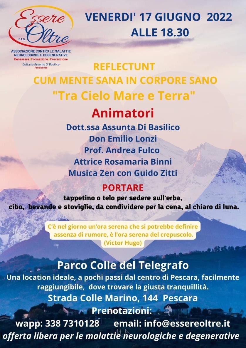 Redazione- L’Associazione Essere Oltre contro le Malattie Neurologiche e Neurodegenerative, si riunirà con i soci volontari presso lo spettacolare Colle del Telegrafo di Pescara, per sensibilizzare e motivare le persone ad un’attenzione alla propria persona e alla persona altrui. Consideriamo fondamentale la conoscenza di sé per capire come migliorare la qualità della vita valorizzando se stesi e le relazioni con gli altri. È solo il primo paso per prossimi progetti in cantiere. Animatori dell’evento la presidente dell’Associazione Dott.ssa Assunta Di Basilico, Don Emilio Lonzi, Prof. Andrea Fulco, Attrice Rosamaria Binni, Musiche Zencon Guido Zitti. La Presidente dell’Associazione Dott.ssa Assunta Di Basilico conclude dicendo che raggiungere uno