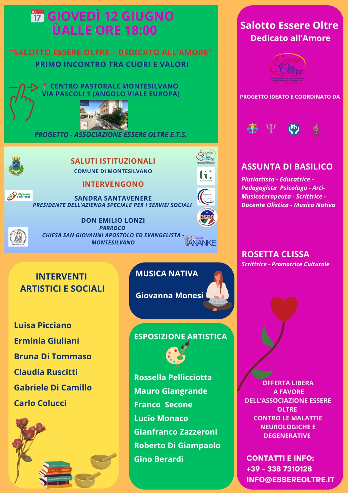 L’iniziativa è promossa dall’Associazione Essere Oltre ETS, in sinergia con la Parrocchia San Giovanni Apostolo ed Evangelista di Montesilvano, guidata da Don Emilio Lonzi, con il patrocinio morale della Presidente dell’Azienda Speciale per i Servizi Sociali, Sandra Santavenere.
